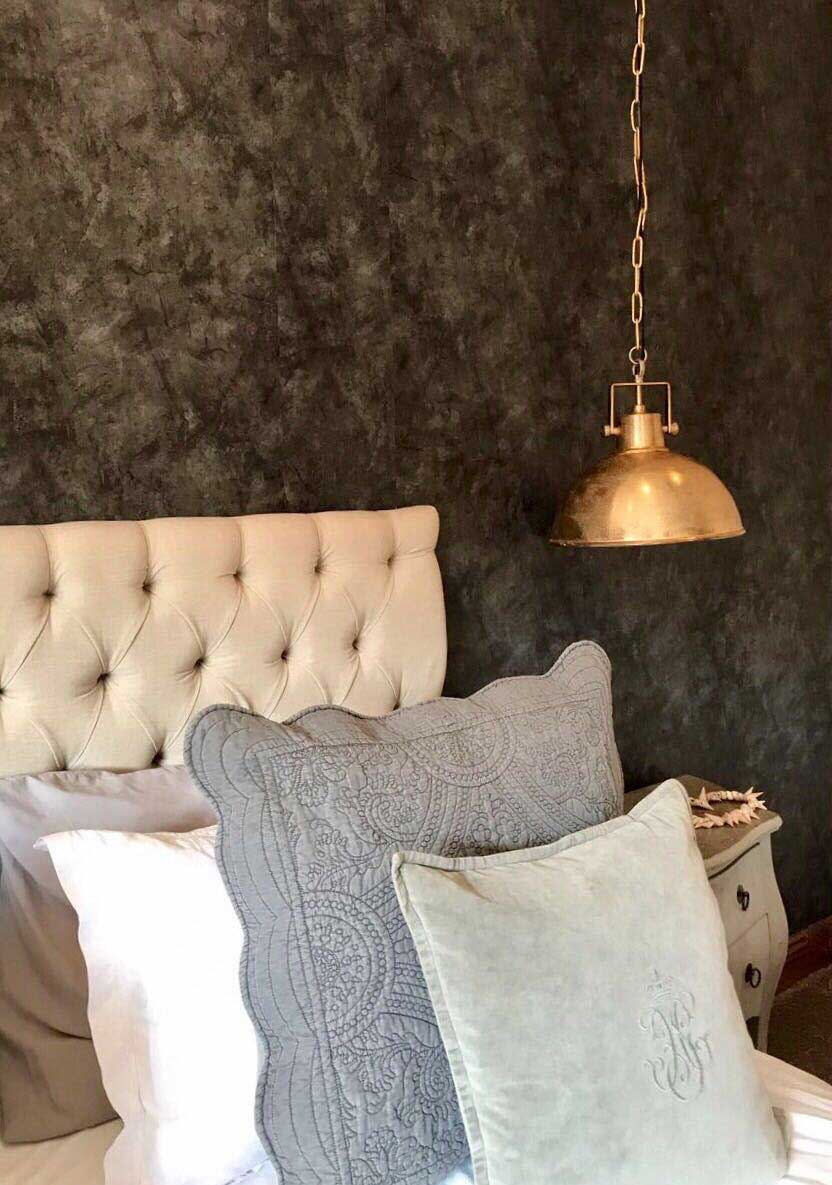 We created a feature wall in the living room with ‘African Sunset’ colour paint; this wall will also be filled with the couple’s travel photos to personalise the space. The bright orange paint instantly brightened and warmed up the space bringing it to life. A bronze aeronautical inspired floor lamp was added to bring in that uniqueness. This style of lighting was pulled into the master bedroom with the hanging pendants.